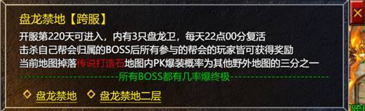 b. 盘龙禁地每日固定22点刷新3只盘龙卫BOSS