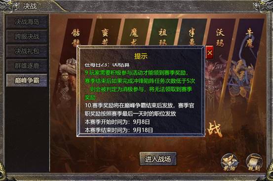 d. 期间尽情提高巅峰争霸中的战力吧,活动结束会根据官职和阵营排行发放丰厚的奖励