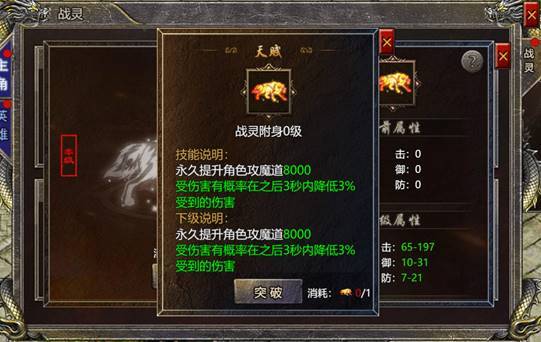 3、每个战灵都有特殊效果,突破可提升特殊效果的属性