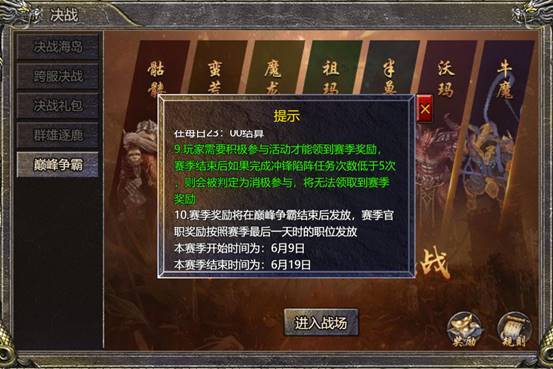 d. 期间尽情提高巅峰争霸中的战力吧,活动结束会根据官职和阵营排行发放丰厚的奖励